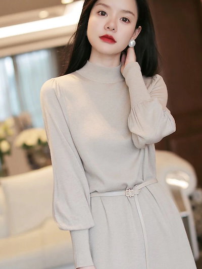 タートルネックニット韓国ファッションレディース Vネック ラウンドネック ニットワンピワンピース 膝丈 ニット 秋冬 長袖夕イトスカ一ト冬のワンピースンワンピ