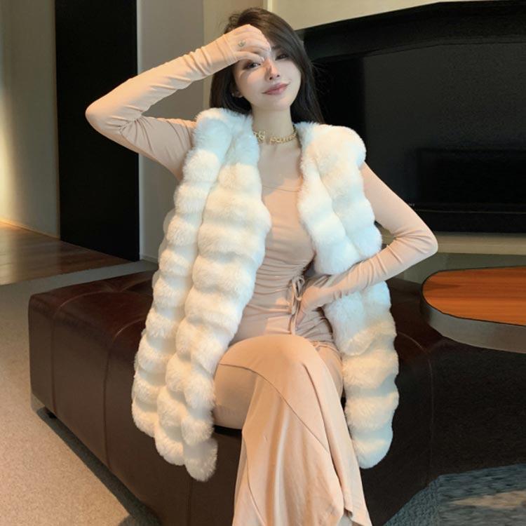 万能流行感 ベスト ロングファーベスト ロングベスト ファーロングジレ ファーベスト ノースリーブ ジレ カーディガン フェイクファー ロング ベスト ジャケッ