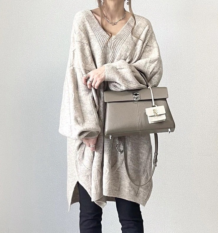 色はアイボリーというよりベージュ。身長154cmでモデルのような丈感で着られて、印象より暖かく、透けず、身体のラインを隠してくれるので気に入りました!