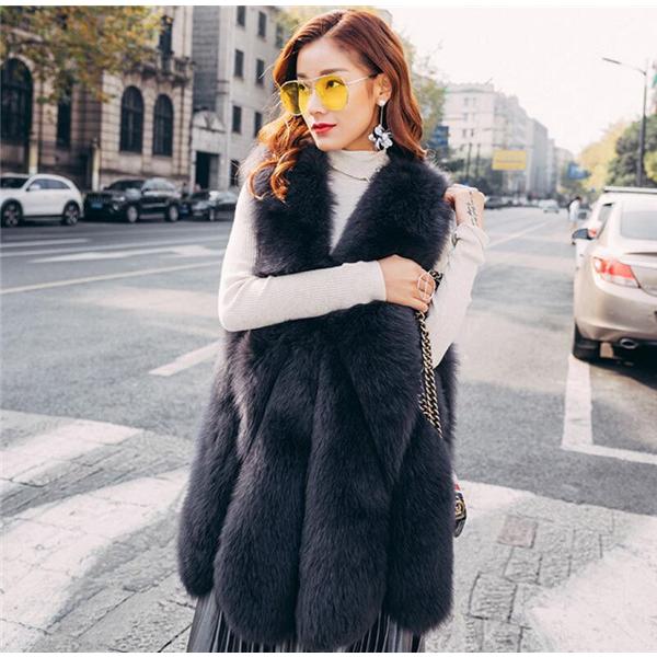 大人の魅力 フェイクファー ファーベスト レデイース ロング ベスト 毛皮コート アウター 毛皮ベスト 冬 ボア 韓国風 ノースリーブ フリース 防寒着 ジレ