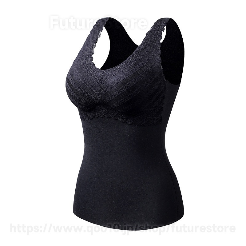 タンクトップ キャミソール 裏起毛 ノースリーブ レディース インナー 大きいサイズ カップ付き レース 秋 冬