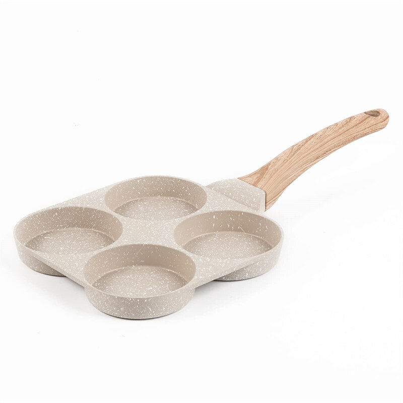 【新年の特恵】目玉焼きフライパン 仕切り付き IH対応 4つ穴円形フライパン マルチパン 朝食パン 焦げ付きにくい洗いやすい 大判焼き器 お弁当 今川焼き パンケーキ 焼きおにぎり グレージュ