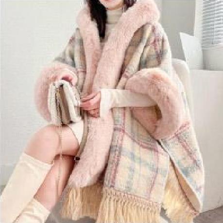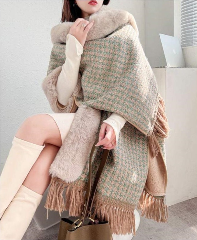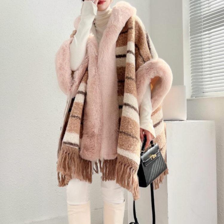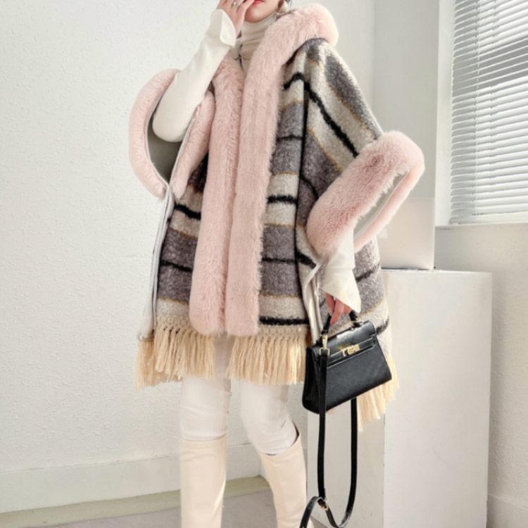 高級な質感 ミドル丈 アウター 秋冬 ケープコート レディース ファーコート コート マント 暖かい ポンチョ風 タッセル 上品 裏起毛 ポンチョ 防寒 ロング