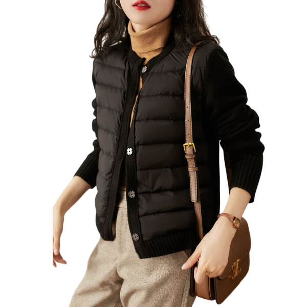 ダウン切り替えニットアウター レディース ショート丈コート柔らかい アウター 定番 秋冬