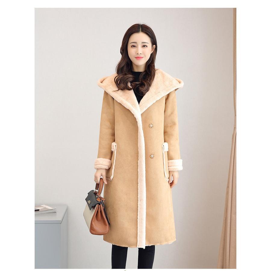 大人気 上品 ミディアム丈 レディース ロング丈 冬 トップス 裏ファー 膝下丈 パーカー フード付き ポケット付き 体型カバー 秋