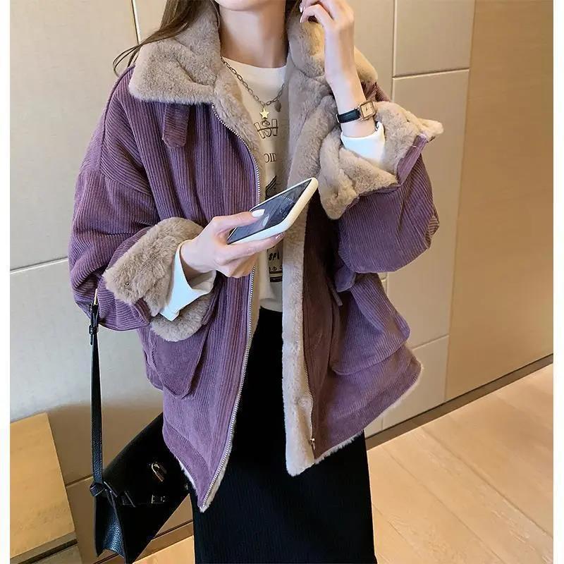 カラーはくすみパープルで、ファーもふわふわ、とても気に入ってます😊 -