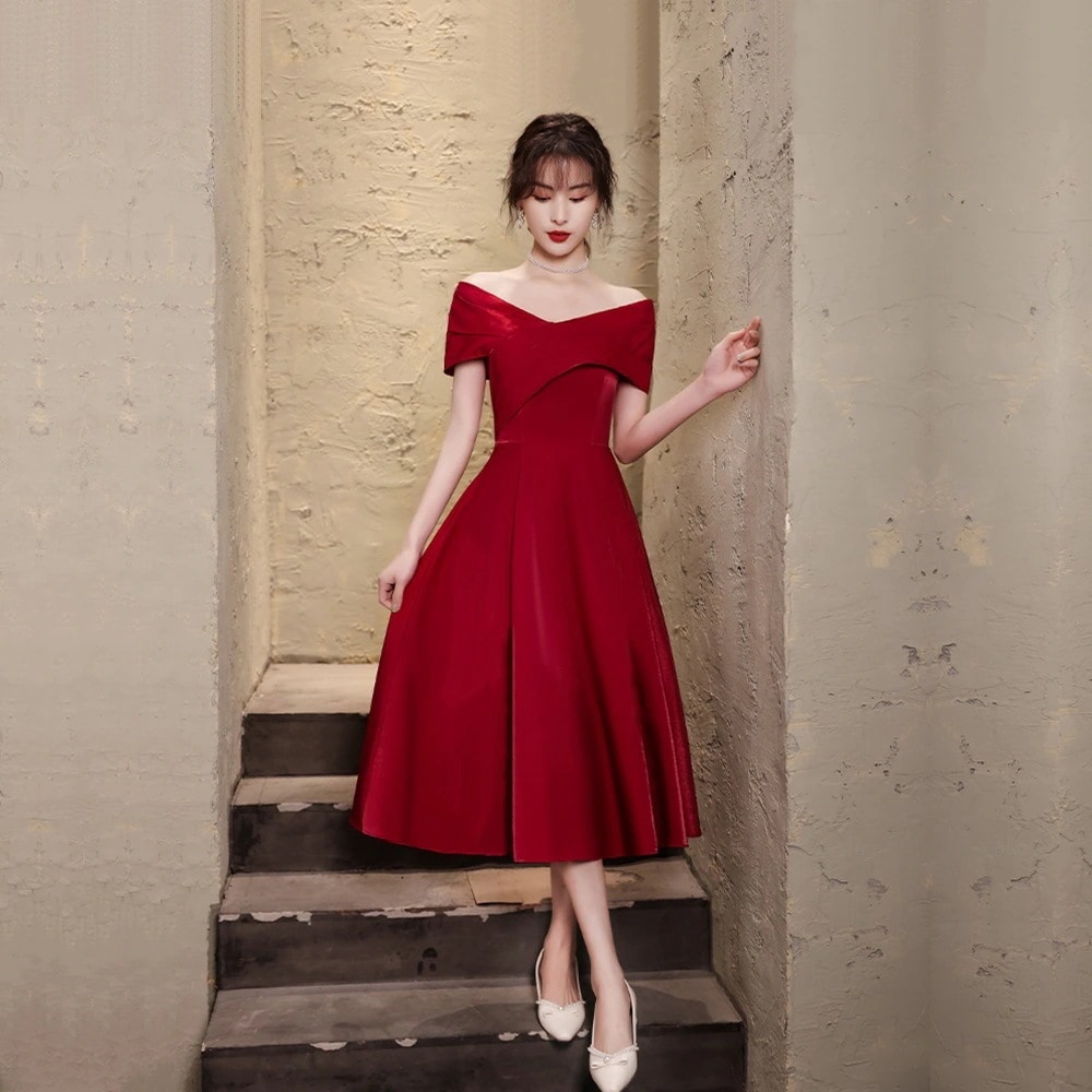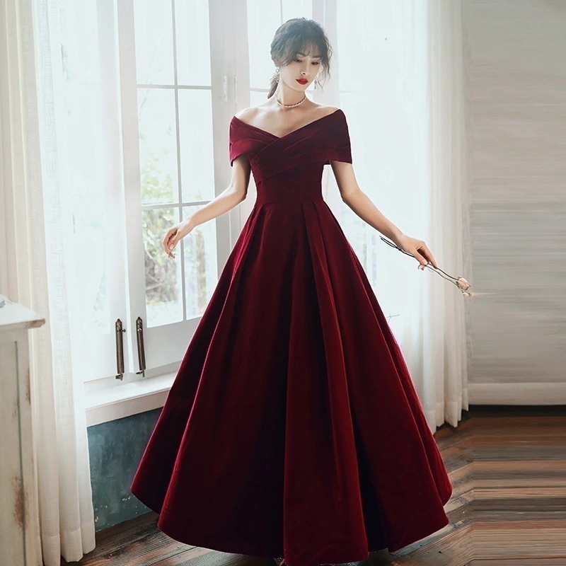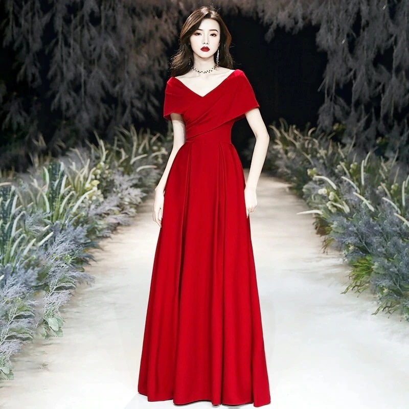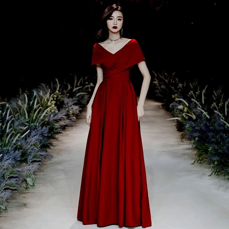 乾杯服 花嫁 結婚式 婚約 バーガンディ ワンショルダー 大きいサイズ 妊婦 お腹カバー スリム イブニングドレス
