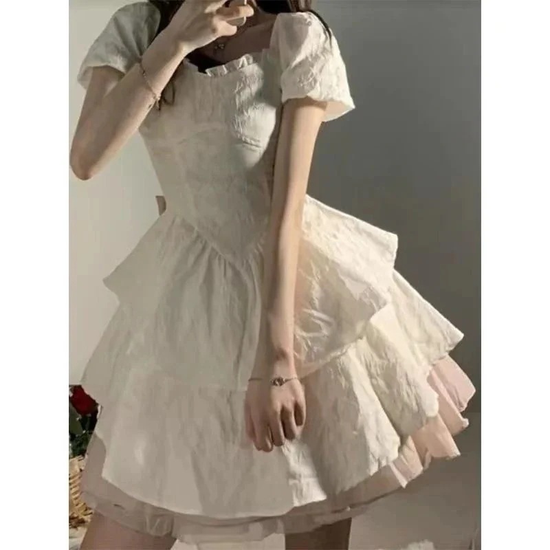 実行中の弓王女のふくらんだドレス贅沢の白い感覚フランスの小さな男純粋な欲望甘くてスパイシーなパフスリーブ夏