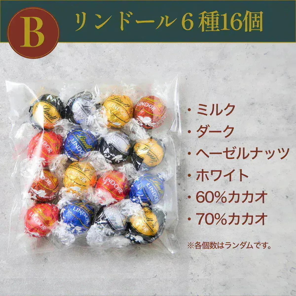 5 5sac*** 2026.01.20 リンドールの種類:B)6種類 16個(ダーク系多め) 冷蔵配送の使用(常温発送は溶ける恐れのある気温です):常温発送(送料無料) 常温発送によるご注意:溶けていた等の状態変化による返品交換は不可となります。(気温が高い時期は冷蔵便をご検討ください)オプション : リンドールの種類:B)6種類 16個(ダーク系多め) / 冷蔵配送の使用(常温発送は溶ける恐れのある気温です):常温発送(送料無料) / 常温発送によるご注意:溶けていた等の状態変化による返品交換は不可となります。(気温が高い時期は冷蔵便をご検討ください)