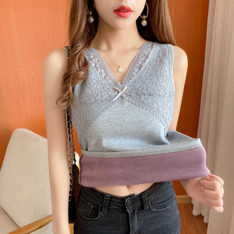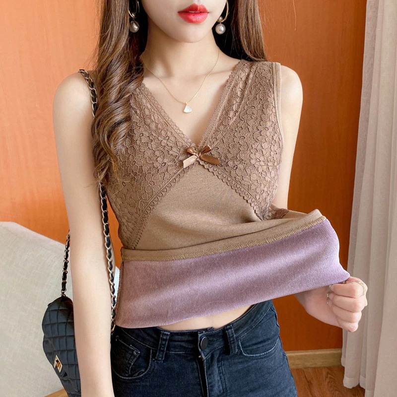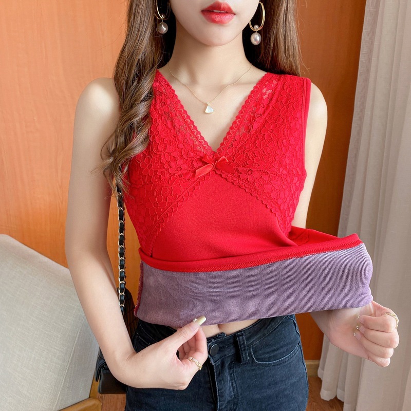 CIE裏起毛インナー インナー Vネックノースリーブ インナー 加厚 裹起毛ファッショントップス キャミソール レディース シンプル 大きいサイズ シー インナー 下着 クリスマス