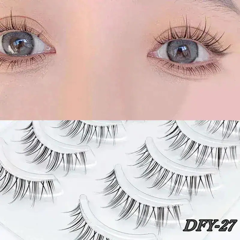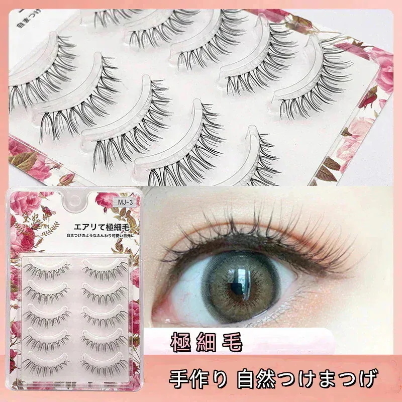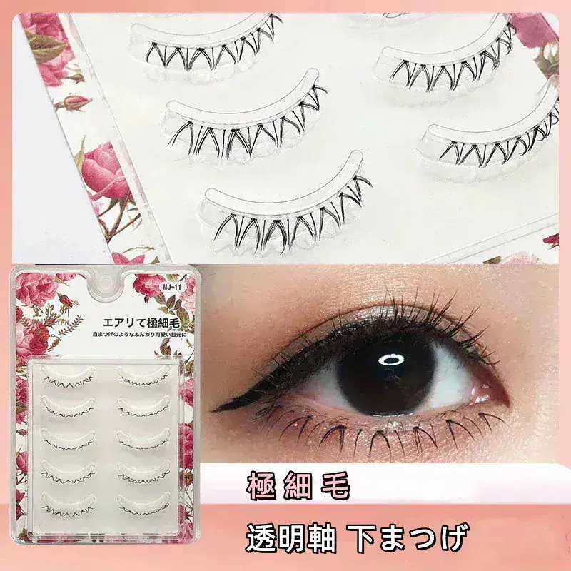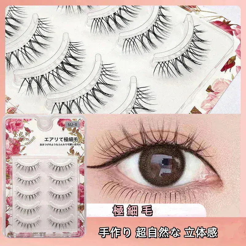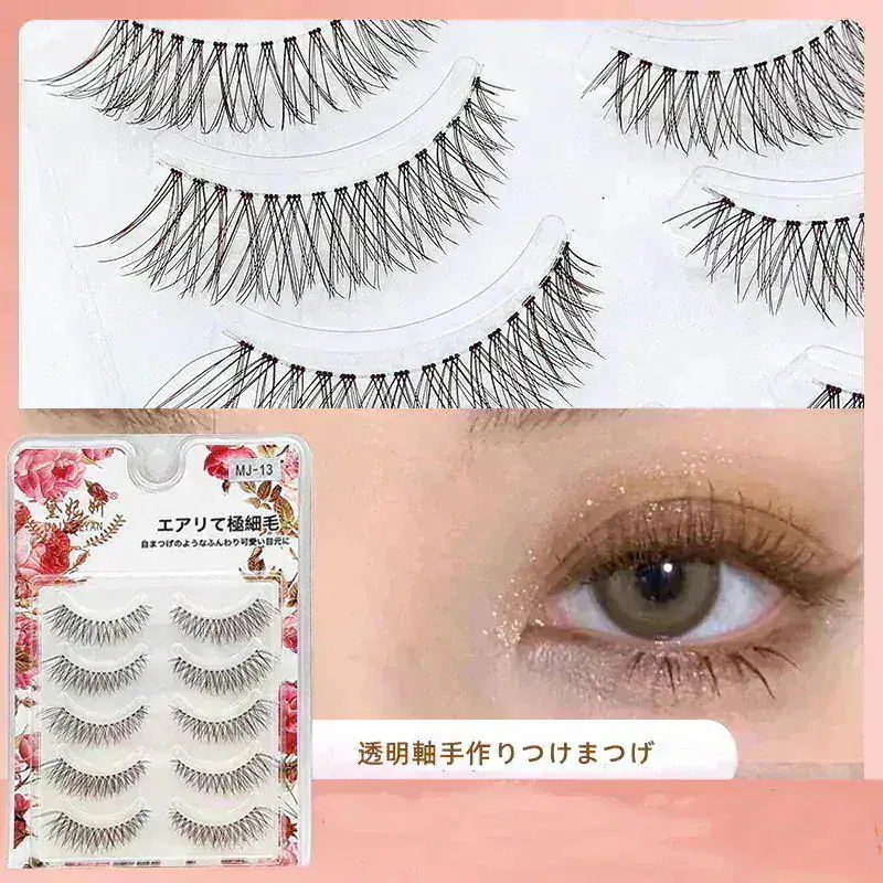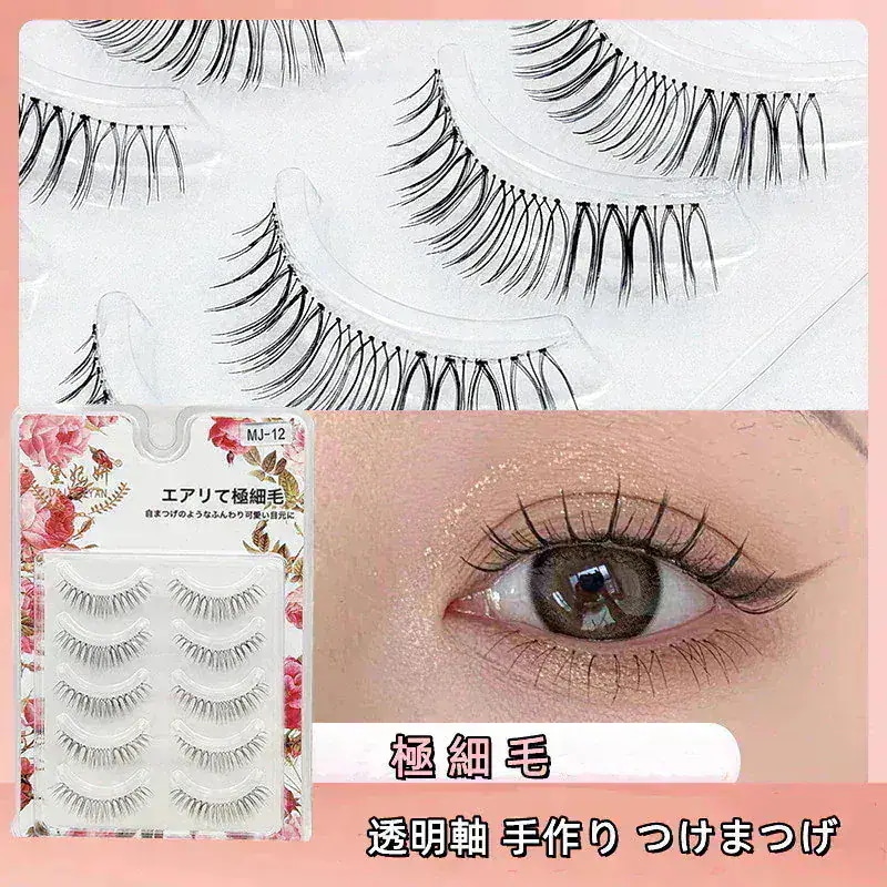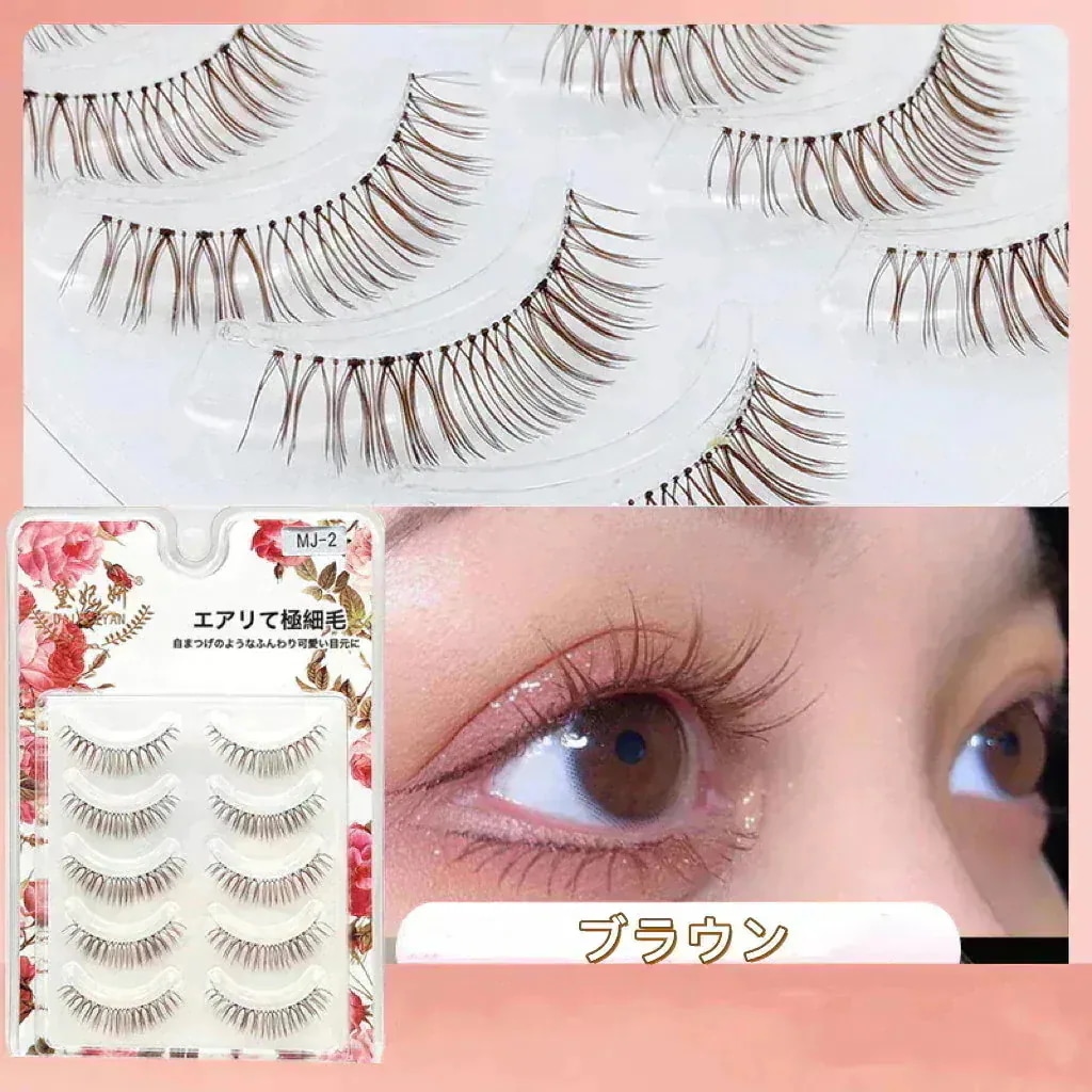 つけまつげ ナチュラル 透明軸 手作り 黒/ブラウン 自宅で DIY 自然なつけまつげ デイリーメイク用 5ペア 中心太め センターラッシュ Cカール 部分用 韓国 メイク マツエク