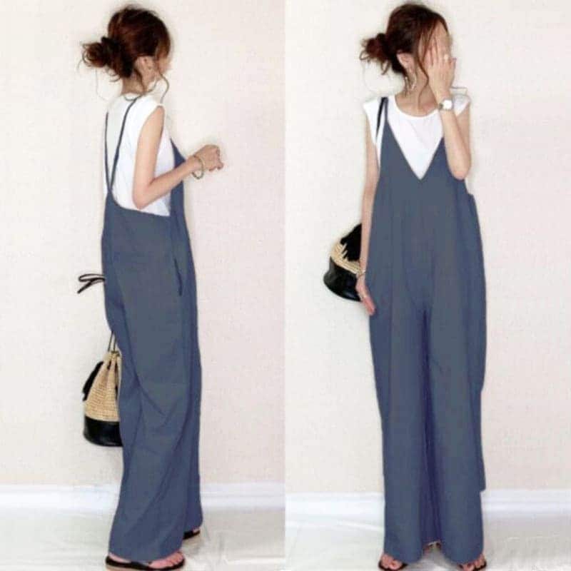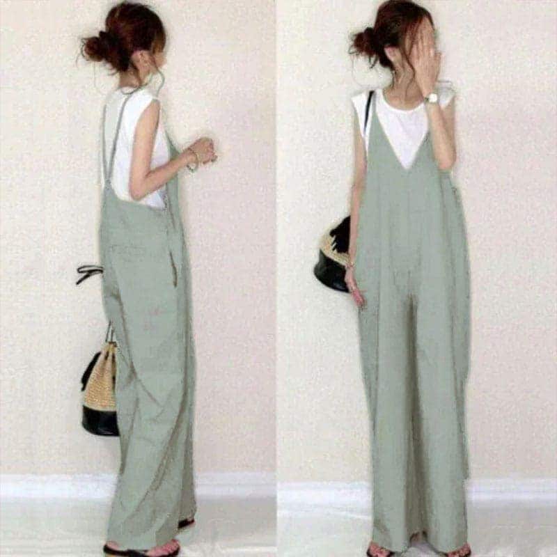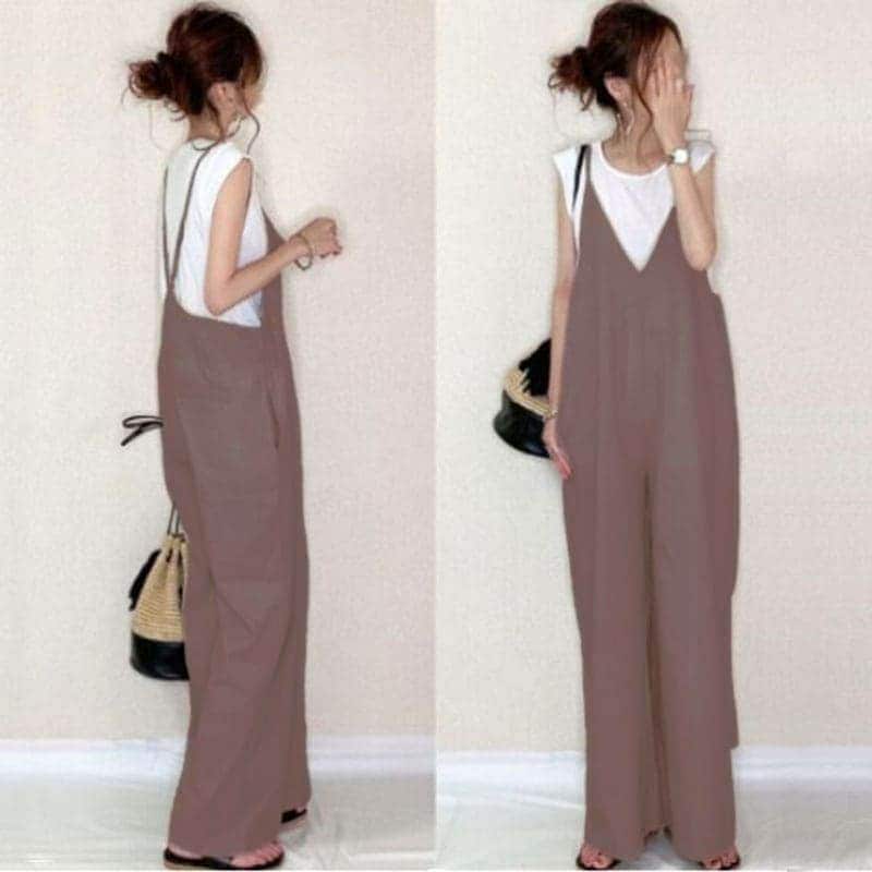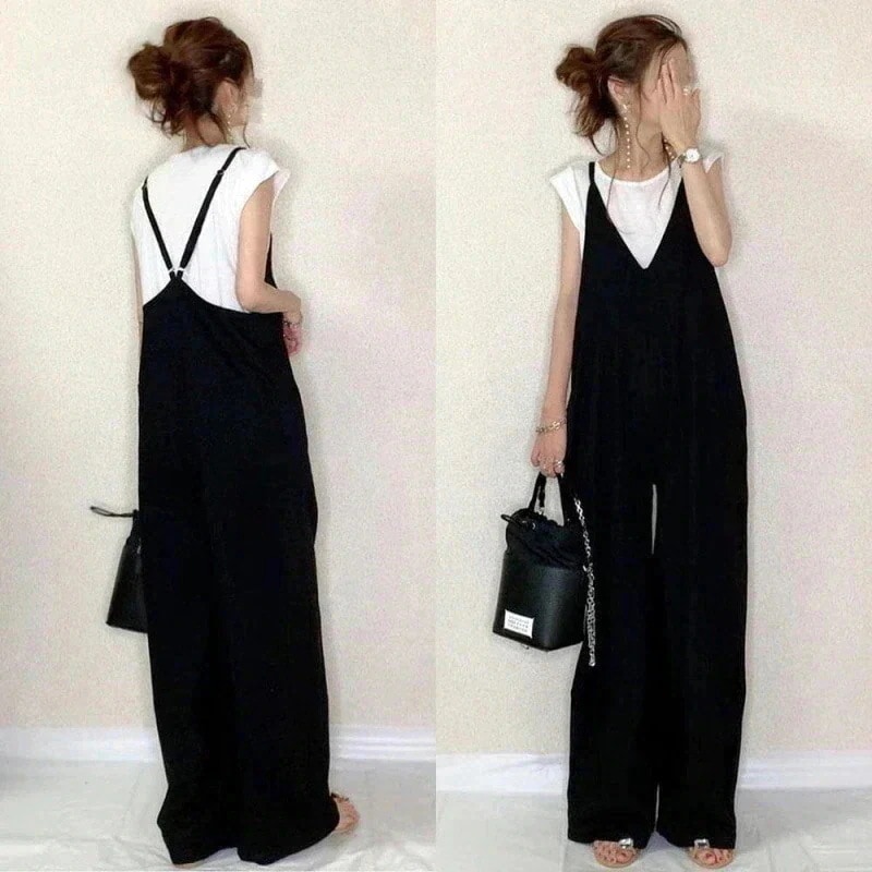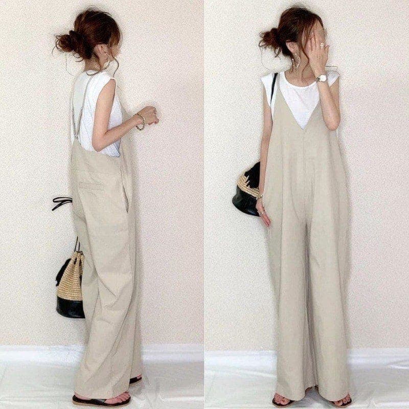 【国内発送】コーデ完成!サロペット 春夏 オールインワン ゆったり レディース Vネック 体型カバー パンツ 着痩せ 無地 ワイドパンツ オーバーオール ロングパンツ シンプル カジュアル