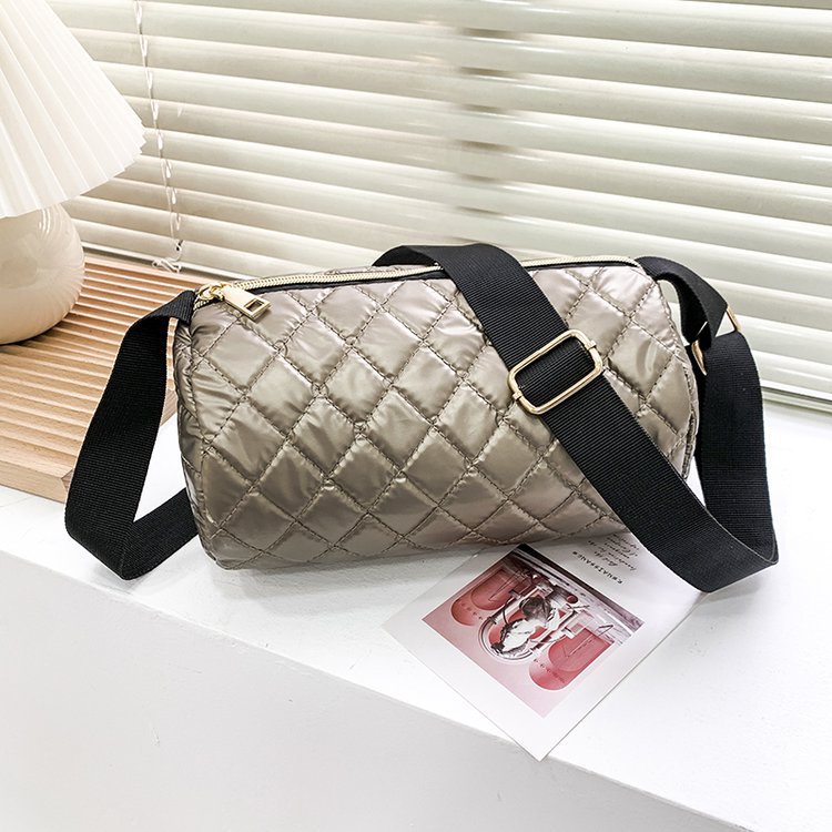 女性用の新しい冬用円筒形コットンコートバッグトレンディな刺繍菱形ファッショナブルなワンショルダークロスボディダウンバッグ