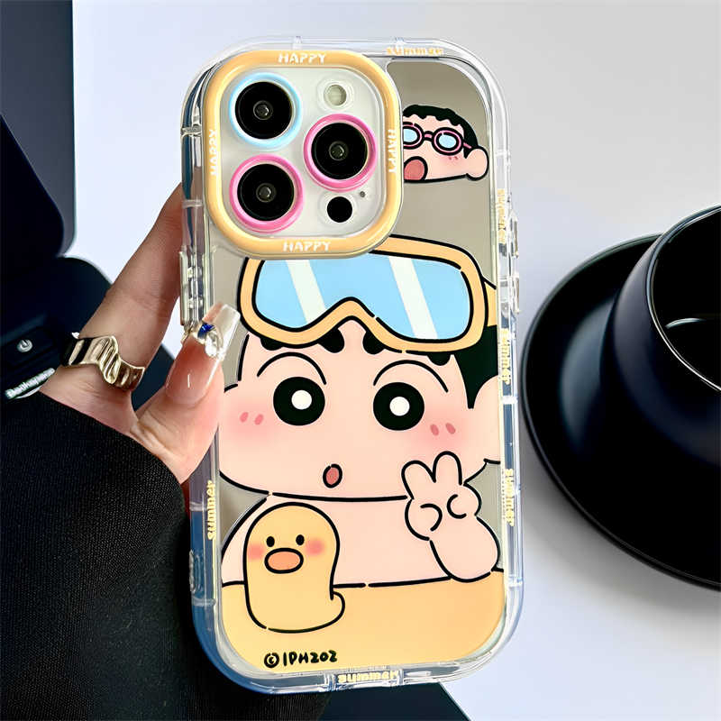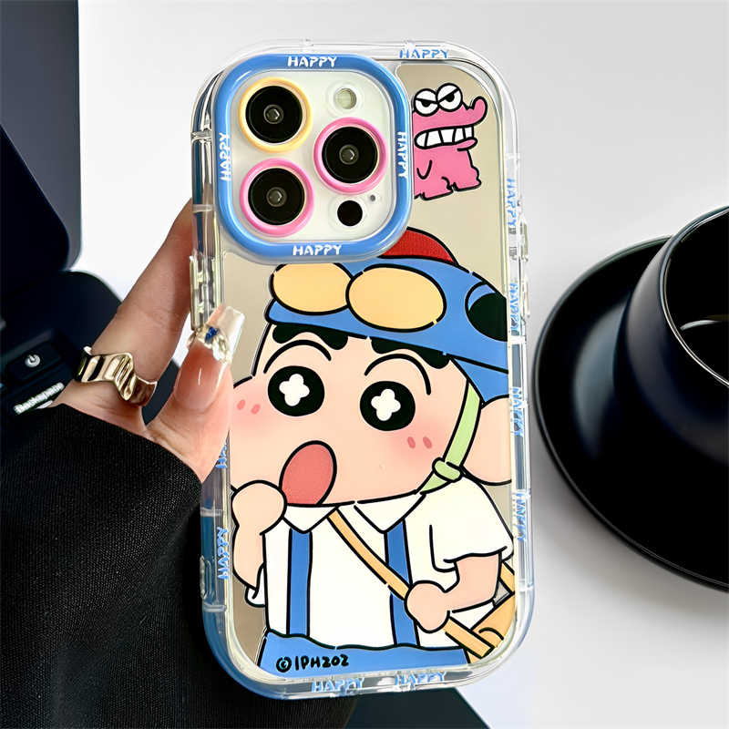 大人気 アイフォーン クレヨンしんちゃん 16 proアップル15携帯ケース14かわいい12 proミニ13 promax全包レンズ転倒防止保護カバー化粧直しミラー高級感を怪しむ
