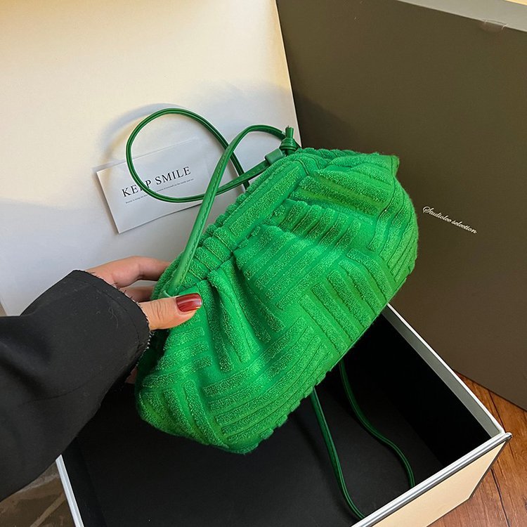 今年の秋冬人気レディースバッグ新作高級スエードクラウドバッグプリーツショルダークロスボディバッグクリップバッグ