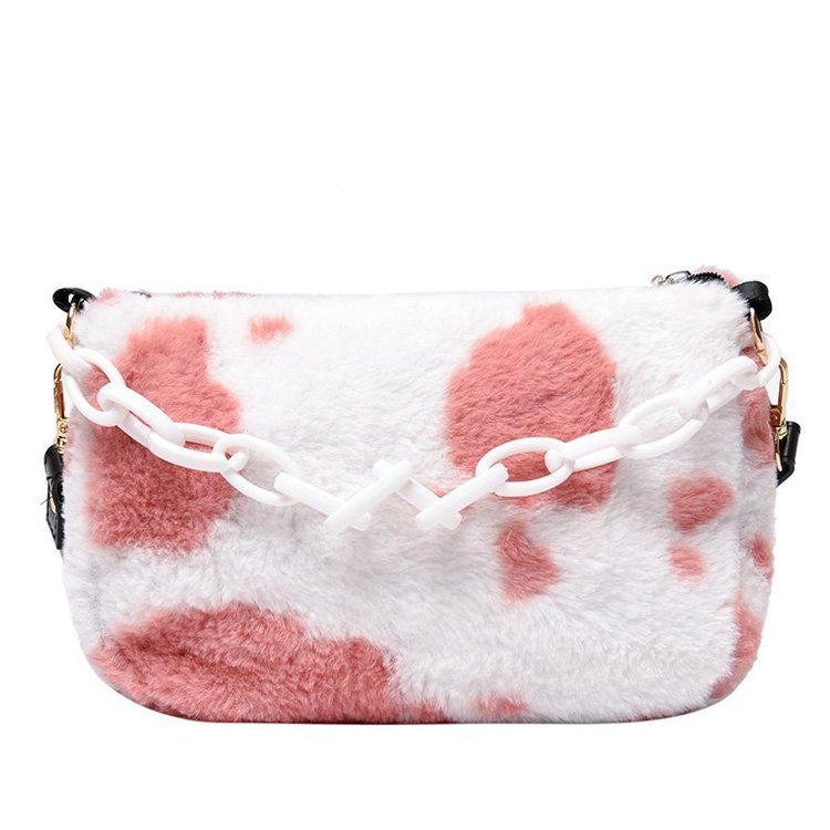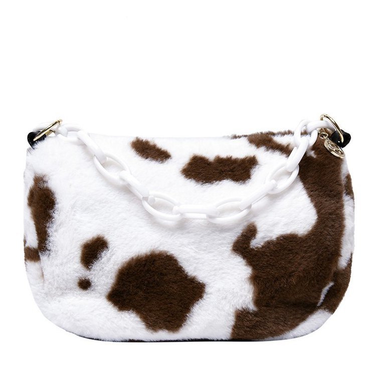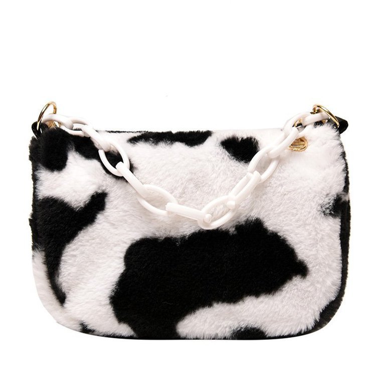 秋と冬の女性のための牛柄のかわいいバッグ新しいトレンディな韓国ベルベット多用途学生肩脇の下ぬいぐるみバッグ