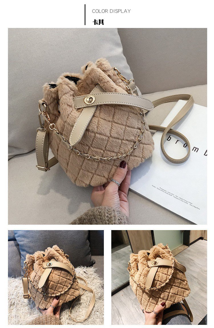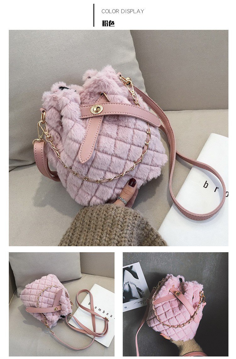 秋冬新作女性用チェーンスモールバッグ新質感プラッシュバケットバッグファッショナブルで人気の刺繍クロスボディバッグを発売