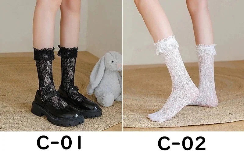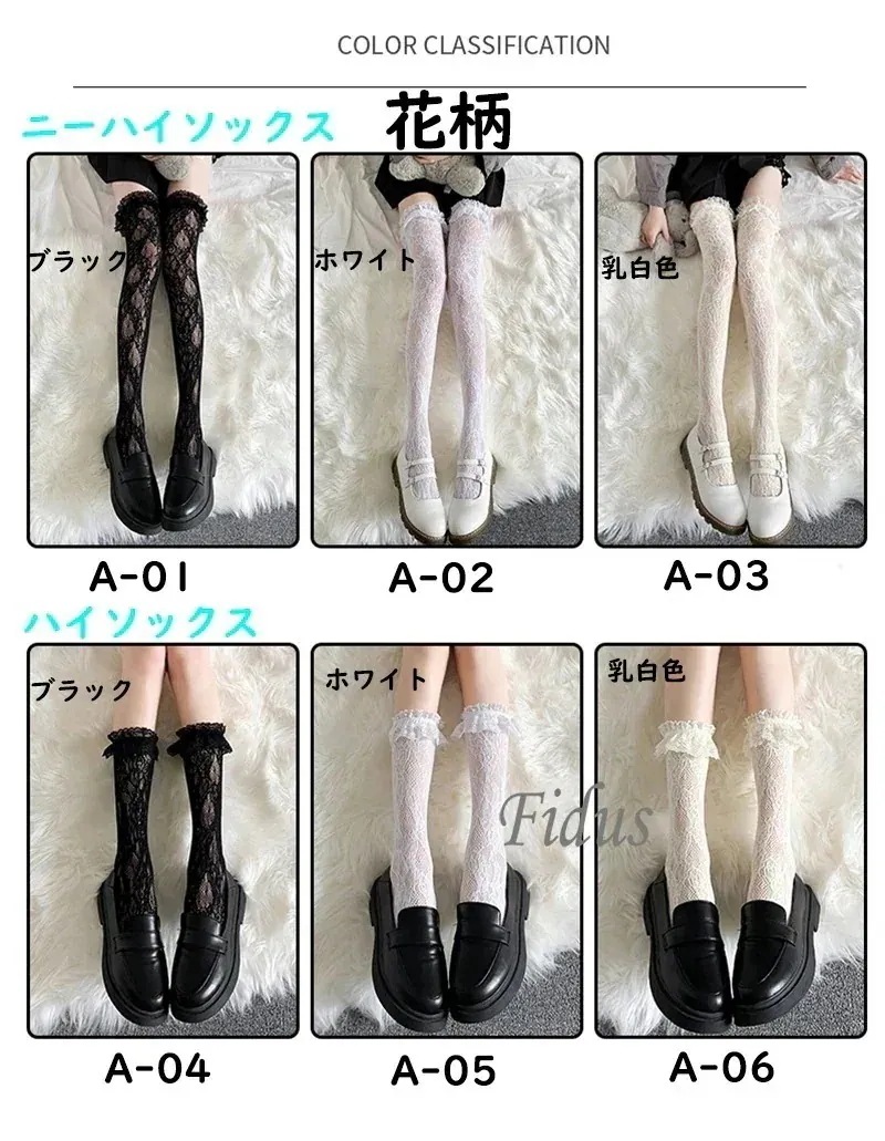 可愛いセット下着レース レディース 靴下 2足セット 黒 白 ハイソックス ニーハイソックス スクール 学生 女子高生 制服 イベント フリルレース ロリィタ 春 秋 夏 コスプレ 日常 カジュアル