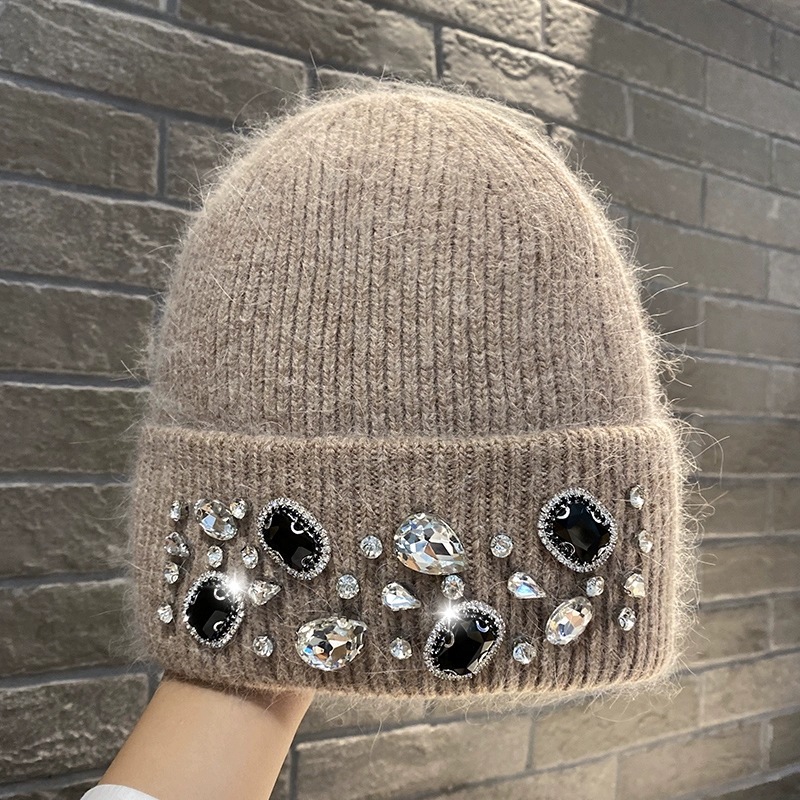 ニット帽 ビーニー ワッチ キャップ 柔らかい ストレッチ リブ ゆったり ラインストーン キラキラ サイズ 帽子 レディース(347)
