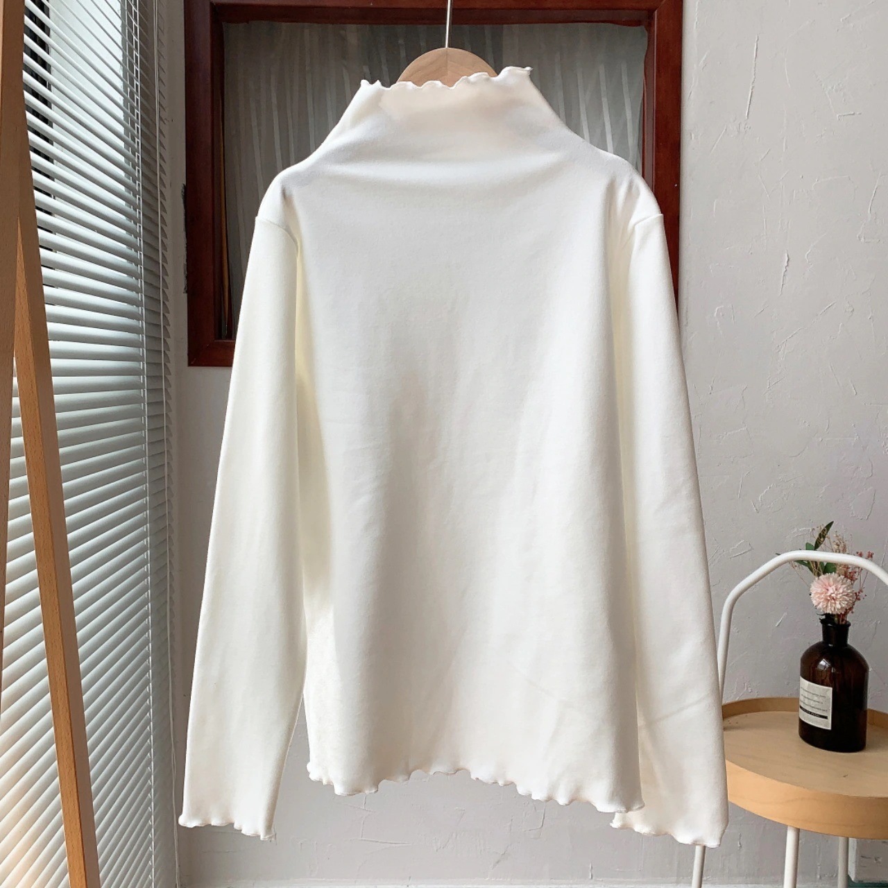 カシミヤタッチ ベーシックニット カシミヤタッチ 秋冬新作ボトムブラウスレディース木耳サイドハーフハイネック長袖ピュアカラーインナーウォームトップ