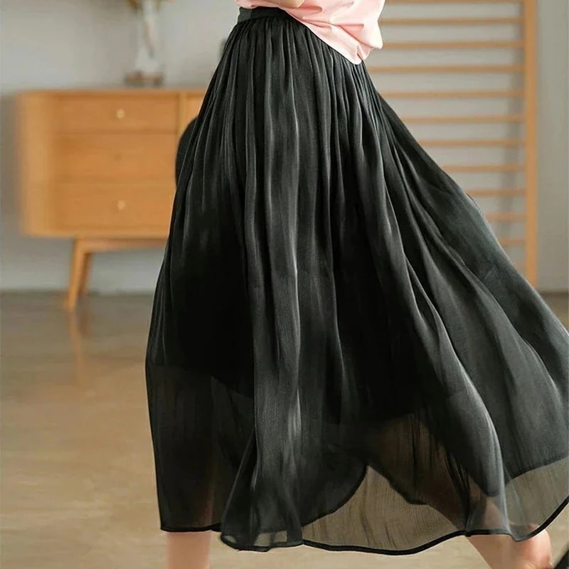 ひろがり過ぎずすっきり着こなせました。たたみジワにはアイロンが要りました。