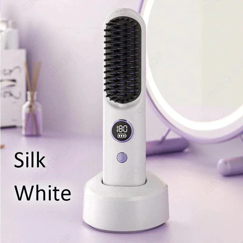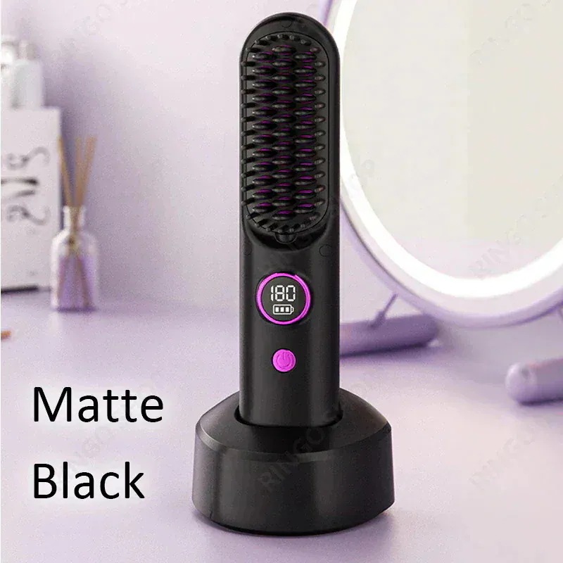 【在庫セール】ヒートブラシ コードレスブラシアイロン ストレート マイナスイオン USB充電式 9段階温度調整 静電気防止 デジタル表示 持ち運び 大容量 30分オートオフ