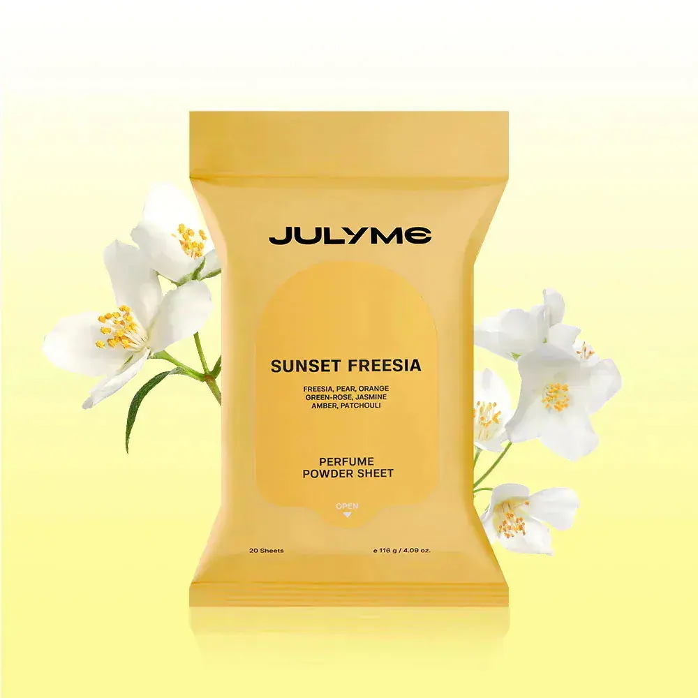 サンセットフリージアめちゃめちゃいい香り。バニラプロポーズは少し甘いかな、でも使えない甘さじゃないので嫌いじゃない。20枚入りでコンパクトなのが良い!シートはエンボス加工あり、大判ではない。サラッと仕上がりでパウダー配合。じゅわっと水分たっぷりで拭きたい人には向かないかも!朝は十分拭き取れてベタつかないでいい香りを纏えるのでこの夏いっぱい使いたい!!