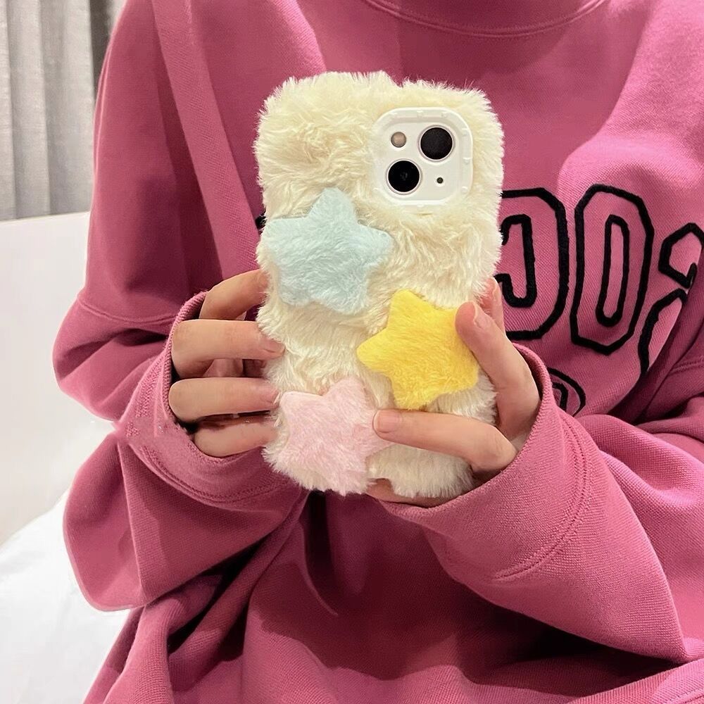 iphone15ケース スマホケース 毛皮 星 韓国iPhoneケース iPhone15/14/13/12ケースPRO/PROMAX スマホケース iPhoneケース クリスマス