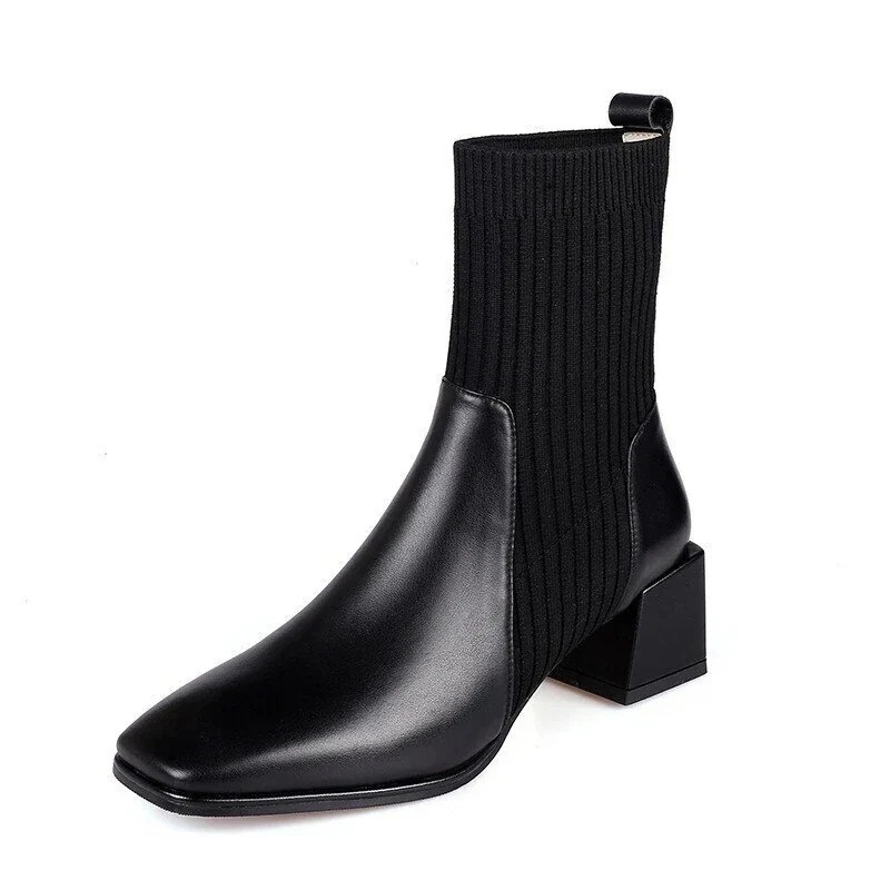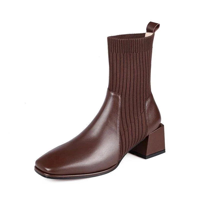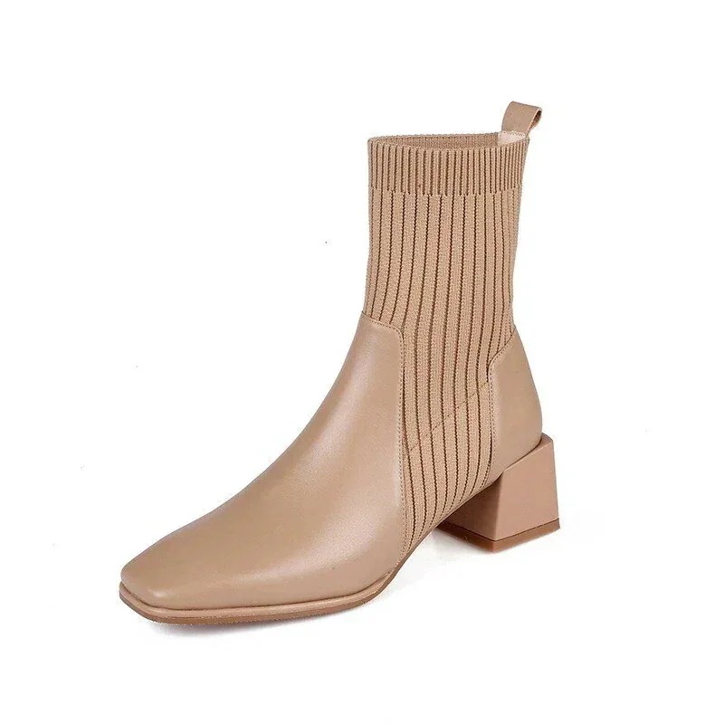 ショートブーツショットブーツウールニットストレッチブーツ女性秋冬新作厚底ヒール
