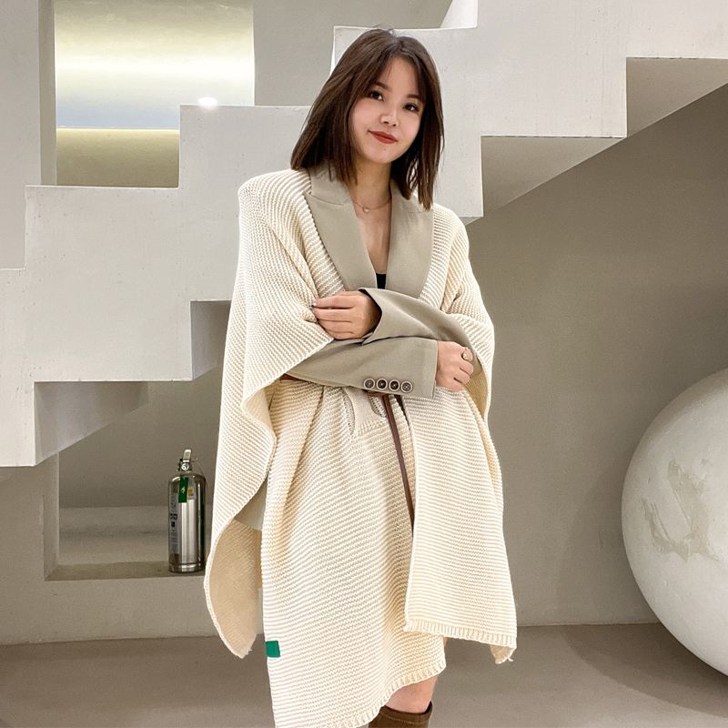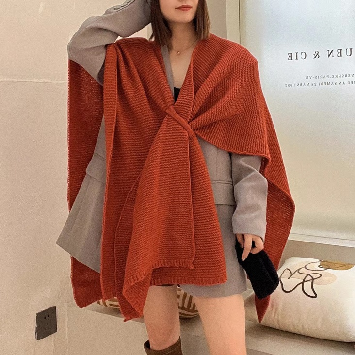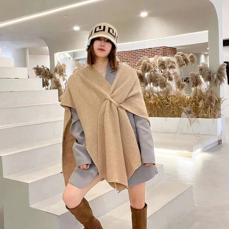 韓国ファッション スカーフ 大ストール 斗篷 ジャケット フェイクカラー トップス装飾 毛糸厚手 クロス固定 ウォーム ネックプロテクター ニット百掛け 流行り アクセサリー怠惰風