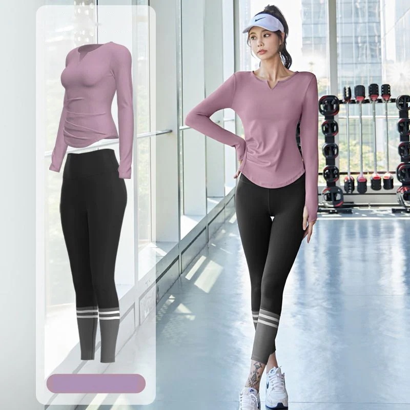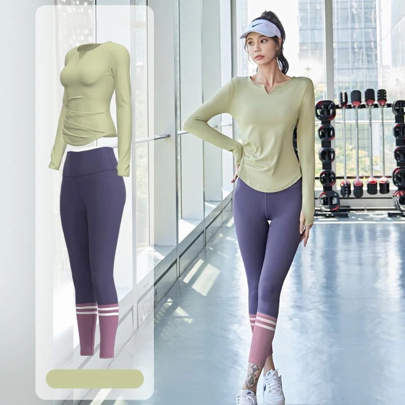 SNSで話題 レディース ヨガウェア 上下セット スポーツ 長袖 トップス パンツ 高弾性 吸汗 速乾 大きいサイズ