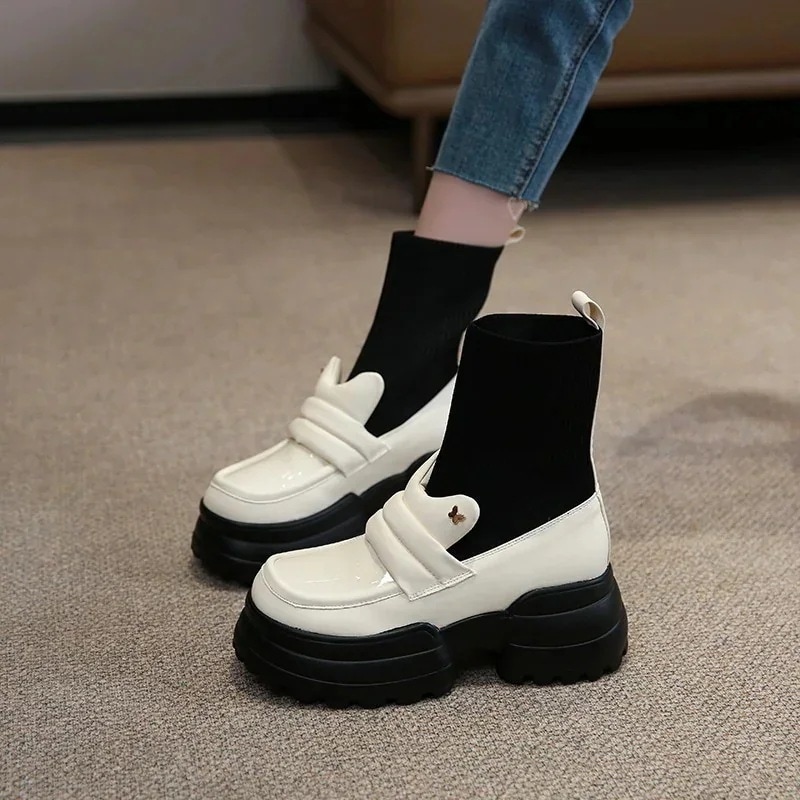 ショートブーツ 冬 ブーツニットストレッチショートブーツオールインワンブーツ