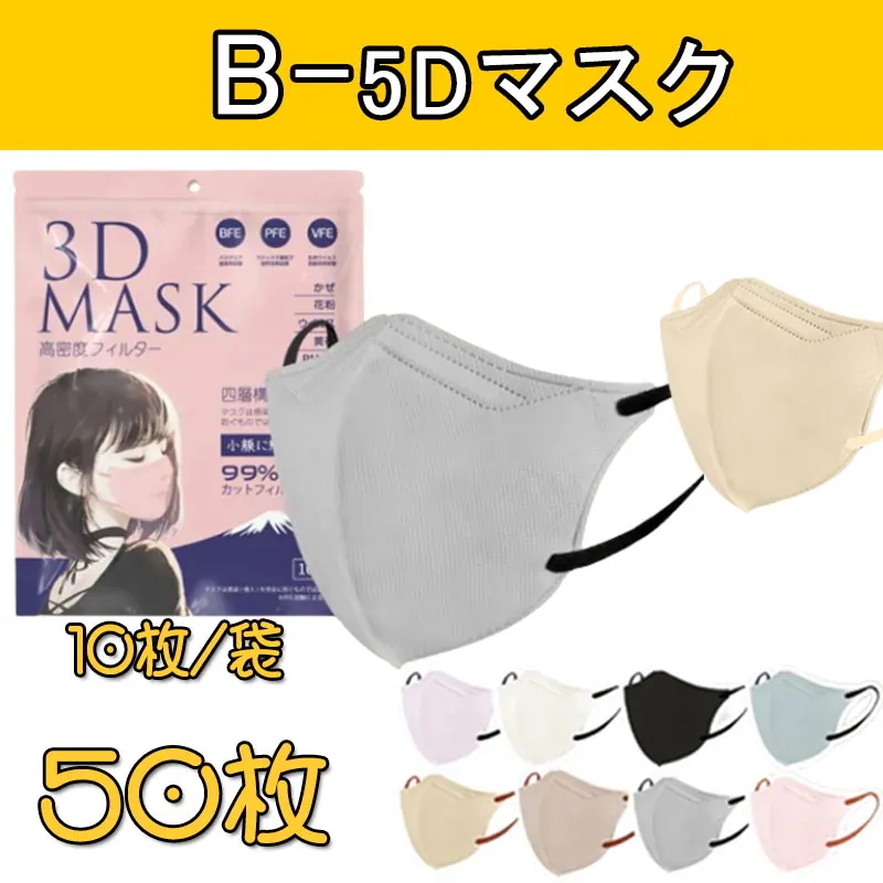5 5ty6*** 2024.06.09 Type:B-5Dマスク Color:01 枚数:50枚 (10枚 袋*5)(+199円)オプション : Type:B-5Dマスク / Color:01 / 枚数:50枚 (10枚/袋*5)(+199円)