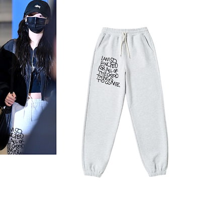 【LE SSERAFIM 着用】 ドローイング レタリング スウェット ジョガーパンツ LIGHT GREY