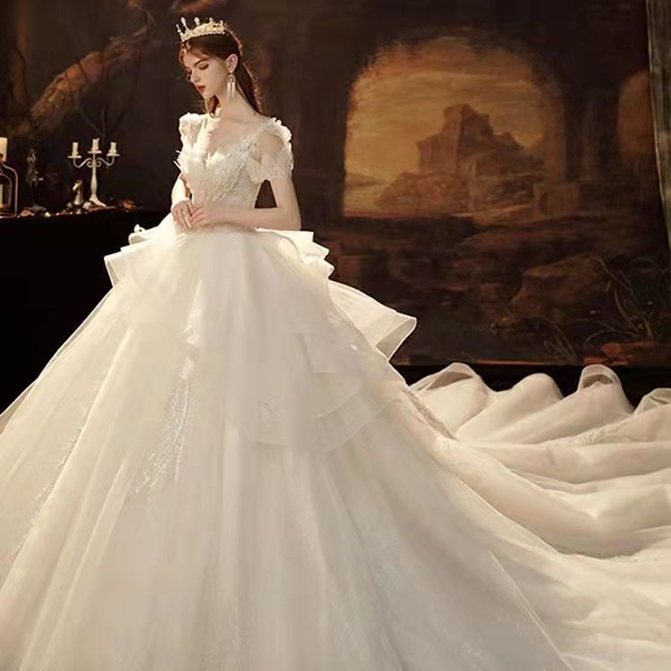 ウェディングメインガーゼ花嫁2025スモールハイエンドスーパートレーリングパレススタイル