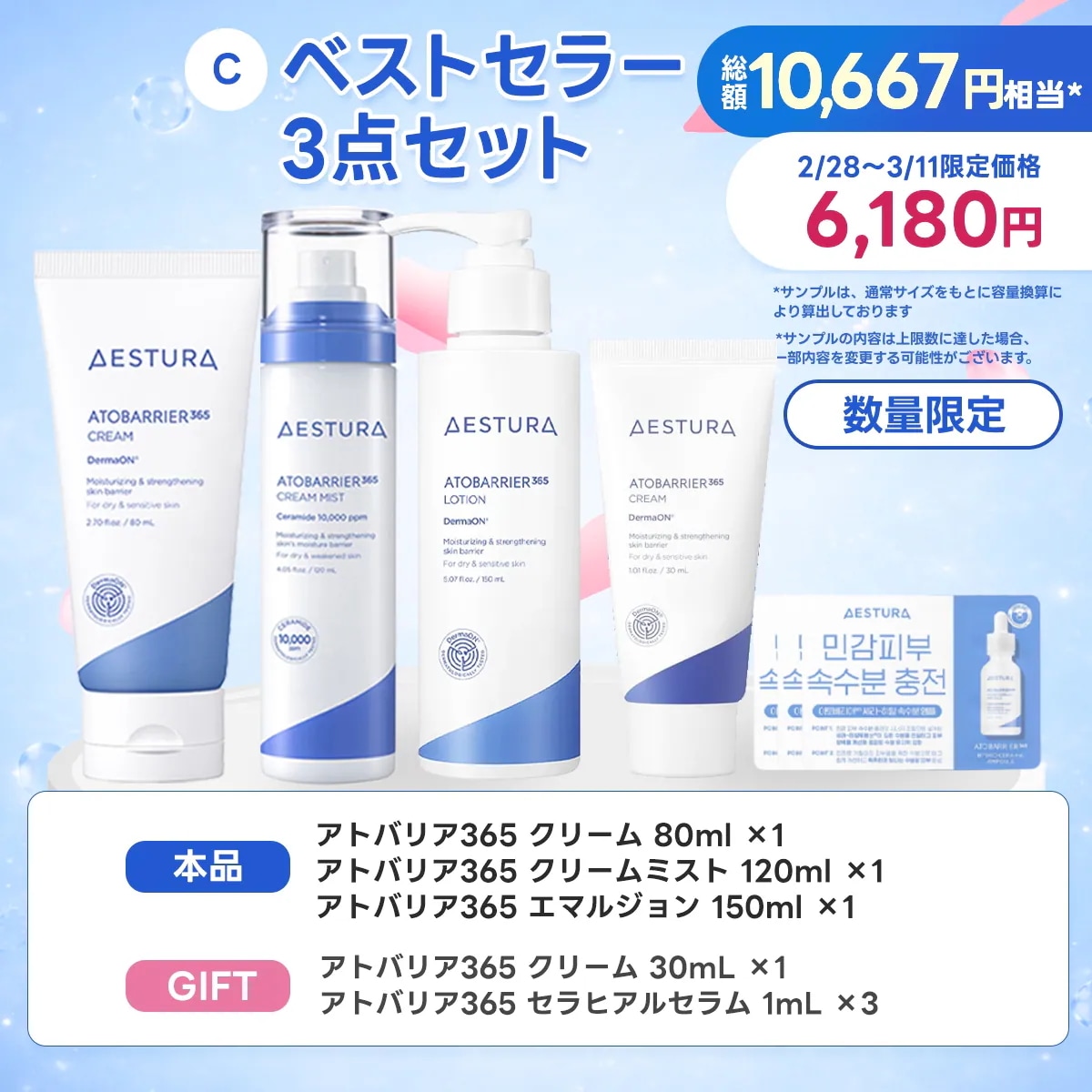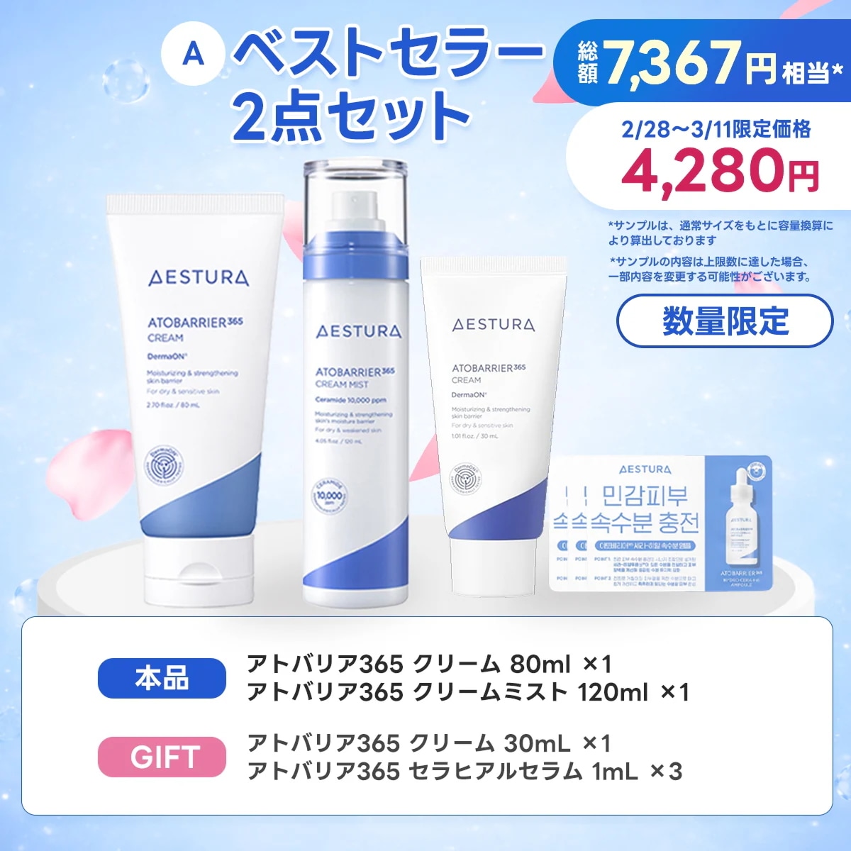 5 5ntm*** 2025.11.30 タイプ:【トナー 25ml付き】アトバリア365 クリームギフトセット+アトバリア365 クリームミストオプション : タイプ:【トナー 25ml付き】アトバリア365 クリームギフトセット+アトバリア365 クリームミスト 肌タイプ : 乾燥肌 肌トーン : ブルベ 肌の悩み : 毛穴, 乾燥