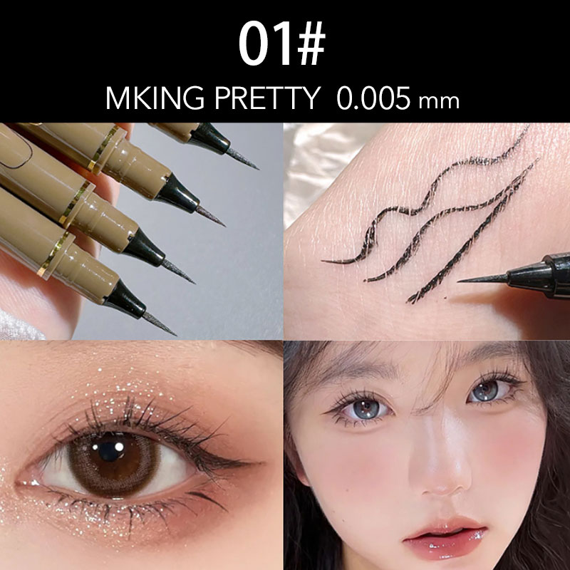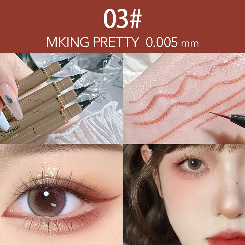 初めて購入させて頂きました。滑らかでとても描きやすいです!01ははっきり黒、03は淡いブラウンです。描いてすぐ擦っても全く滲みません。凄いです。水でも全く落ちませんが、お湯と石鹸だとかなり落ちます。肌への負担も少なそうでとても期待できます。安くてこのクオリティーとても凄いです。使い切ってもぜひリピートしたいと思います。