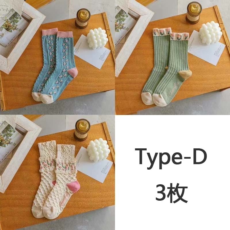 【春季限定】3枚セットストッキング韓国版ins 靴下文芸中ストッキング チューリップのかわいい靴下ファッション シンプル 可愛い 厚い