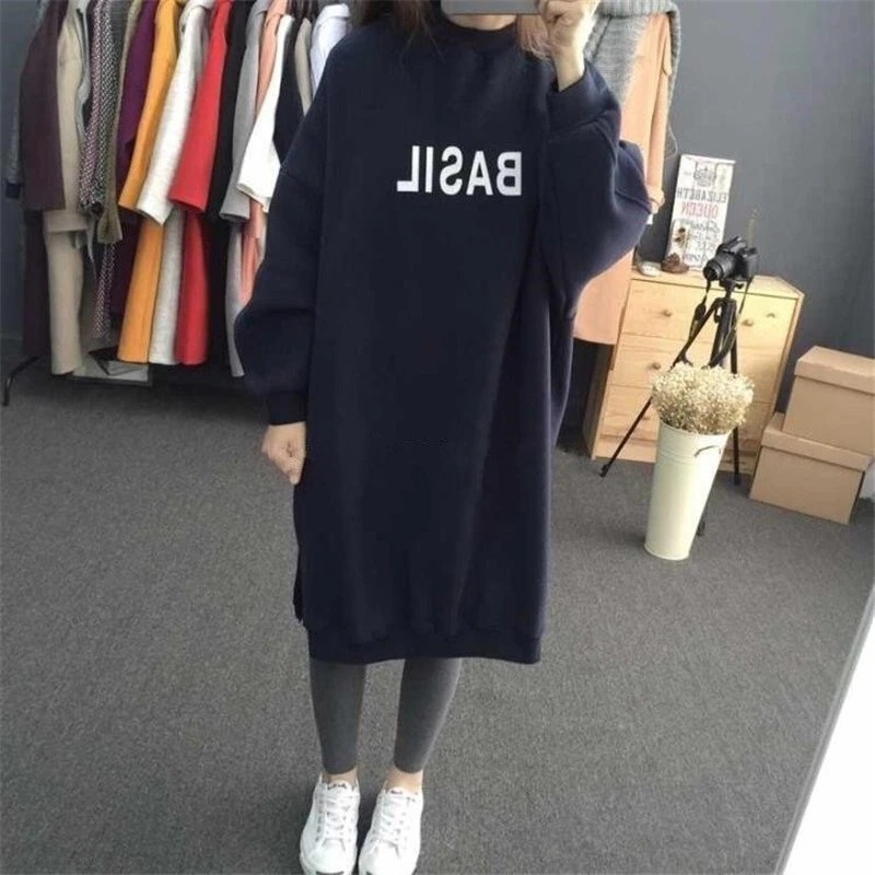レディース トレーナー 長袖 春秋物 裏起毛フードつきのスウェット プルオーバーロングワンピー