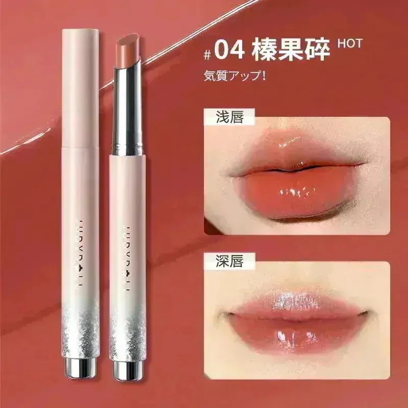 リピート3本目です!!今までの中で1番ちゅるちゅるになります🎀水光っぽい。色味も発色綺麗で全人類オススメしたいレベル!ちゅるちゅるは水飲んだりしたら落ちるけど、色はあんまり落ちないです。
