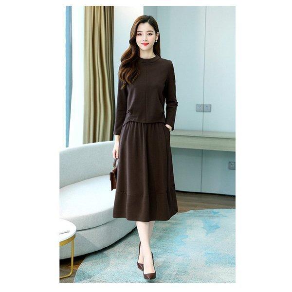 品質いいな新品 ワンピース セットアップ レディース 40代 膝丈 秋 春 長袖 50代 きれいめ 無地 通勤 オシャレ デート 20代 30代 長袖セット 2点セット 大人 上品