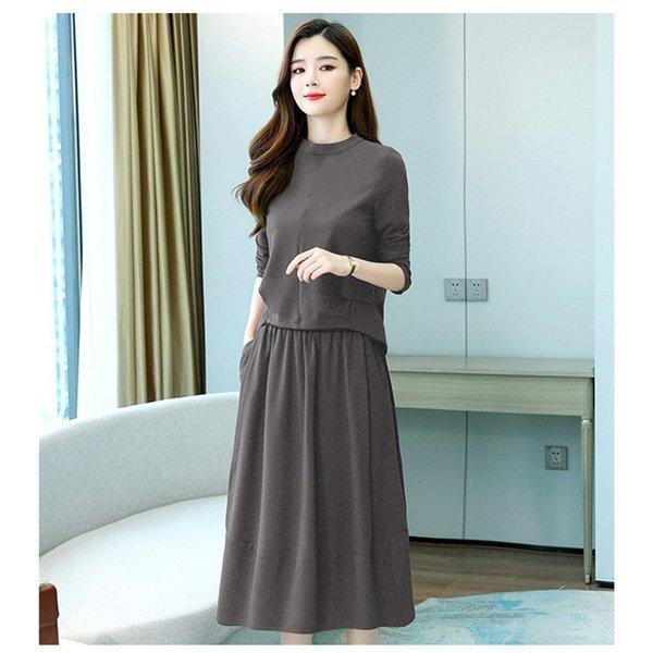新入庫 ワンピース セットアップ レディース 40代 膝丈 秋 春 長袖 50代 きれいめ 無地 通勤 オシャレ デート 20代 30代 長袖セット 2点セット 大人 上品