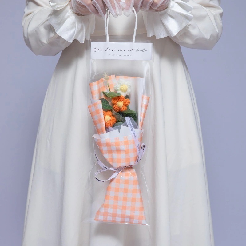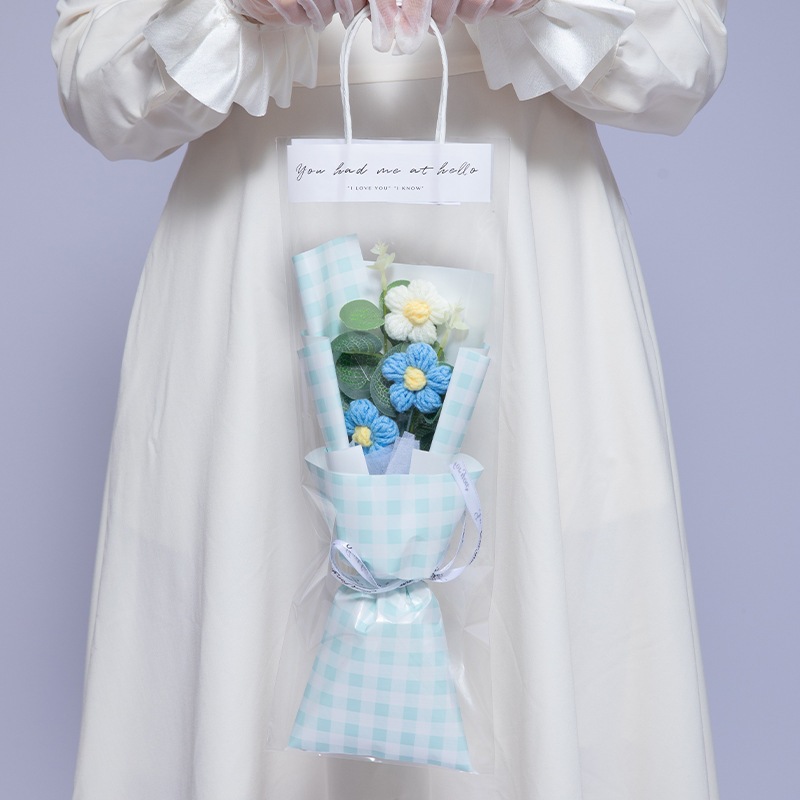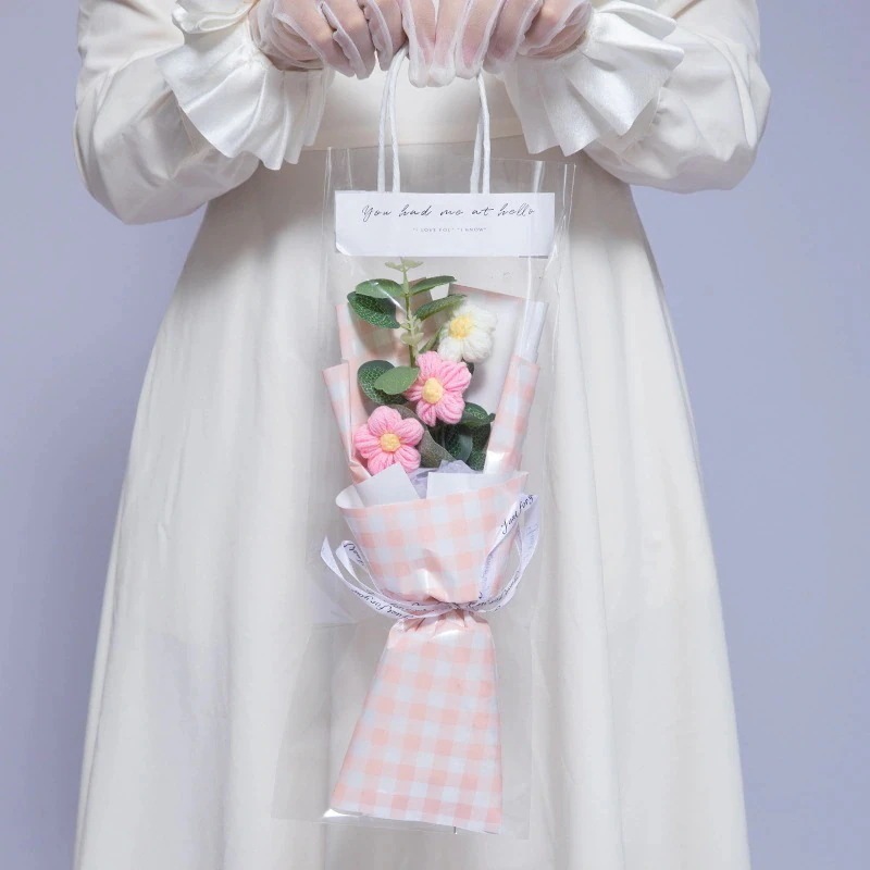 毛糸花クリスマスの花の花束バレンタインデーのミニ屋台の誕生日プレゼントの女性の完成品