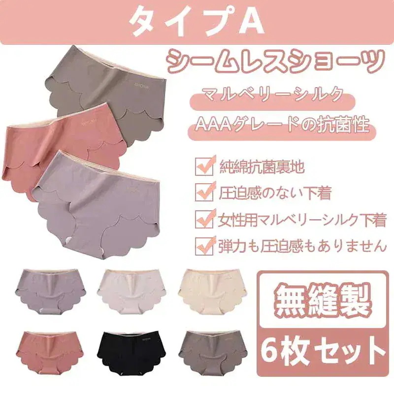 【本月限定】6枚セットシームレスショーツ レディースショーツ 無縫製 無圧迫無共振 伸縮性 マルベリーシルク レディース ピュアコットン 抗菌クロッチ オールインワン シ