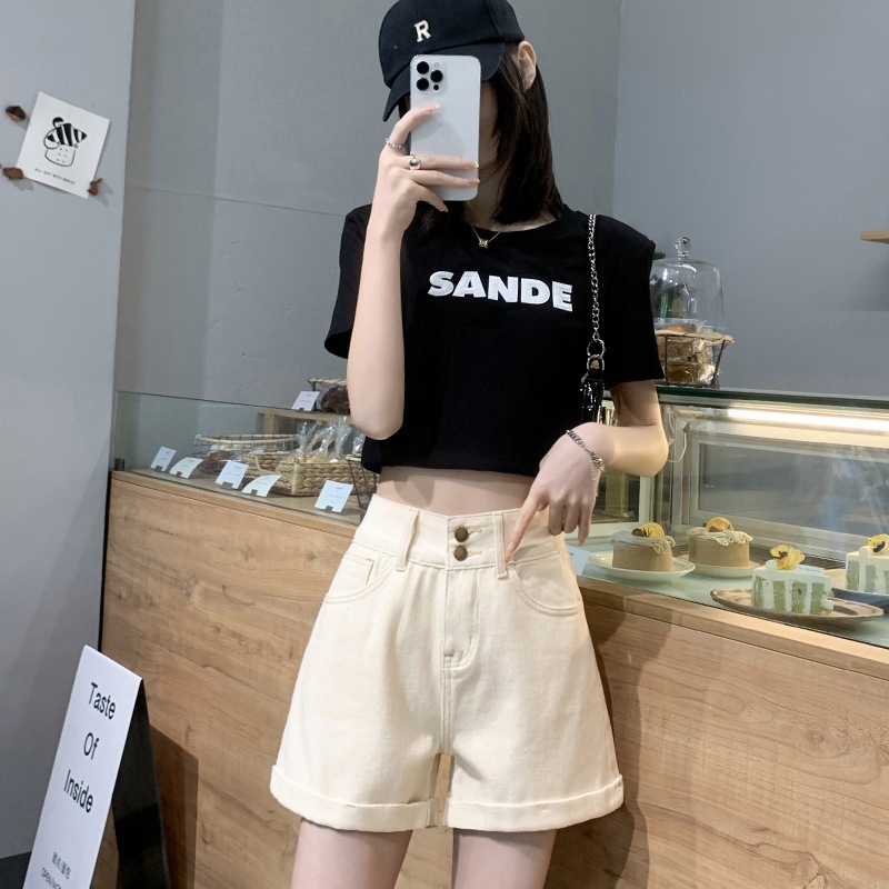 ワイドパンツ 着痩せ ハイウェスト デニム ショートパンツ 夏服 ハーフパンツ レディース服 パンツ ベージュ ジョガーパンツ レディース