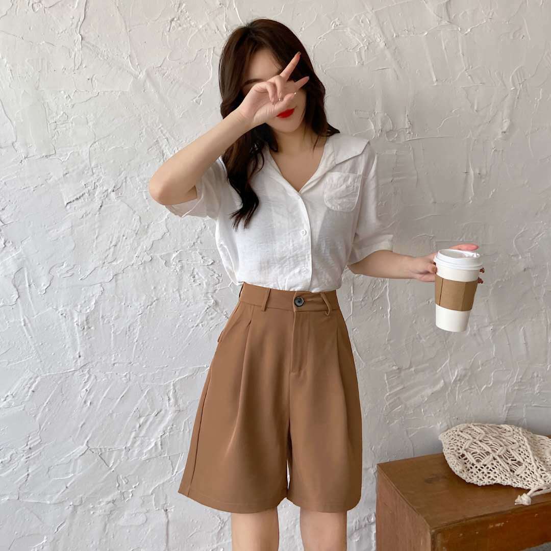 ショートパンツ ストレート ハイウェスト パンツ カジュアル ハーフパンツ ワイドパンツ レディース服 パンツ 無地 韓国ファッション 着痩せ効果