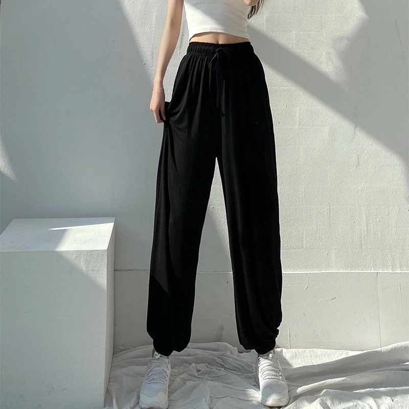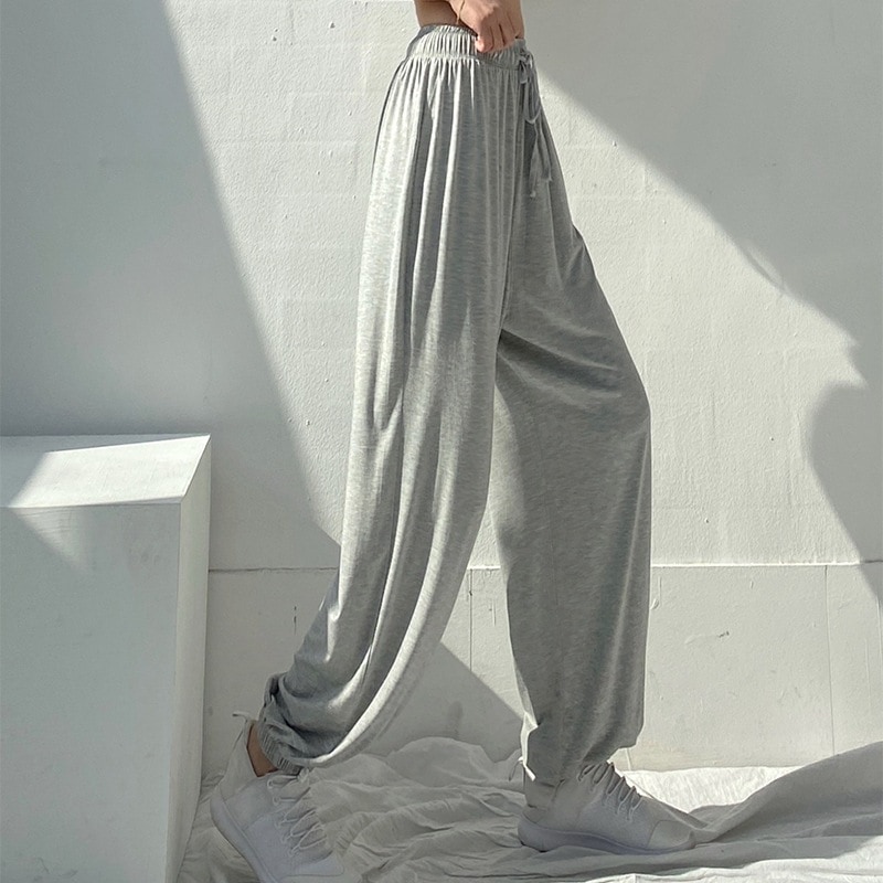 レディース ゆったり 春秋 モダール ダンスパンツ ハイウェスト 着痩せ グレー スウェットパンツ 快適性 ランタンパンツ