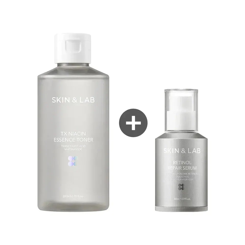 スキンラボは大好きで何度もリピしてます♡そしてパケも可愛い♡ グルタチオントナーはリピでレチノールは初購入です。 トナーは塗った直後すぐしっとりしました。レチノールセラムは乳液っぽいテクスチャーでレチノールにしては軽めの使用感な気がして使いやすいです🫶トナーを使い続けていると肌がワントーン上がったような気がして肌印象が明るくなりました。これからも愛用します。
