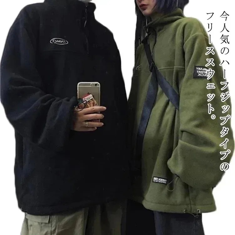 ボアフリース プルオーバー ハーフジップ スタンドカラー メンズ レディース スウェット パーカー ブルゾン 立ち襟 ゆったり 秋服 秋冬 厚手 オーバーサイズ 韓国風 あたっか 保温 防