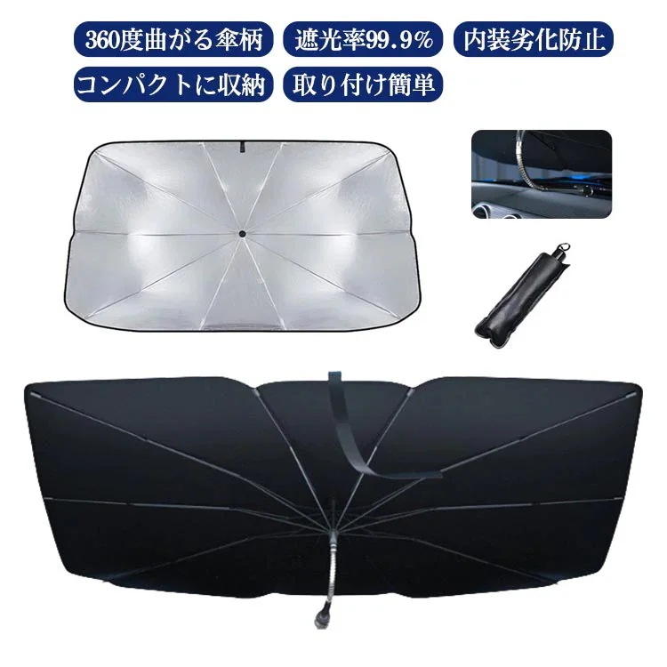 サンシェード 車 360度曲がる柄 傘型 フロント 遮光 遮熱 車用サンシェード 日よけ 車用 折りたたみ傘 紫外線カット 汎用 2サイズ フィット性UP 軽自動車 SUV フロントガラス 傘型サンシ